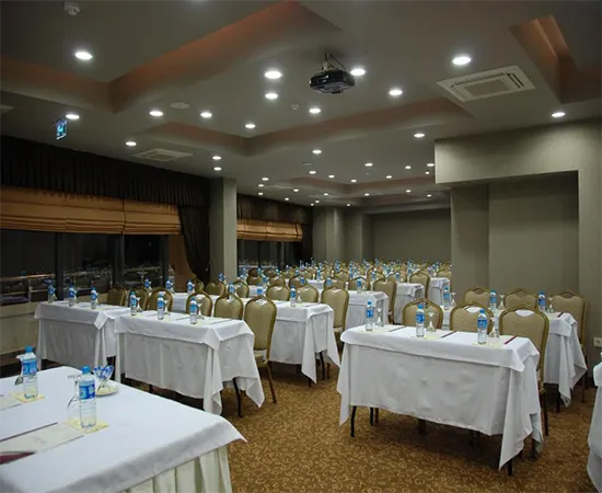 Yüksek teknolojik altyapı ile donatılmış şık ve fonksiyonel toplantı salonlarımız; hem kurumsal toplantılar hem de seminer, eğitim ve özel organizasyonlar için ideal bir ortam sunar. Kablolu ve kablosuz internet, barkovizyon, gelişmiş ses ve aydınlatma sistemleri ile tüm teknik ihtiyaçlar eksiksiz şekilde karşılanırken, ferah ve temiz hava sirkülasyonuna sahip alanlarımız konforlu bir deneyim sağlar.